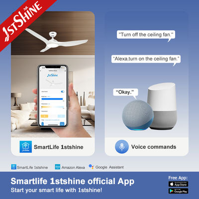 ROHS 52-дюймовый белый потолочный вентилятор с низким уровнем шума, большим потоком воздуха, светодиодным освещением, пятью скоростями и дистанционным управлением