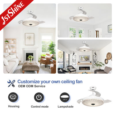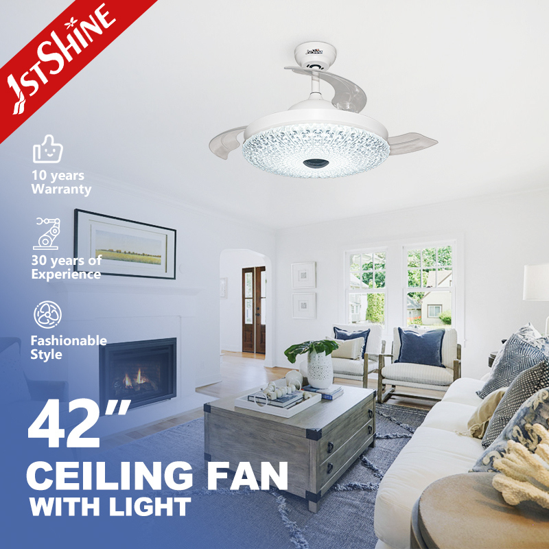 ВСдвижные акриловые лезвияАвтоматически расширяется, когда вентилятор включен, и втягивается, когда выключен, сохраняя чистый, похожий на люстру внешний вид.кристаллический акриловый лампочекУлучшает диффузию света и придает роскошный оттенок любому интерьеру.