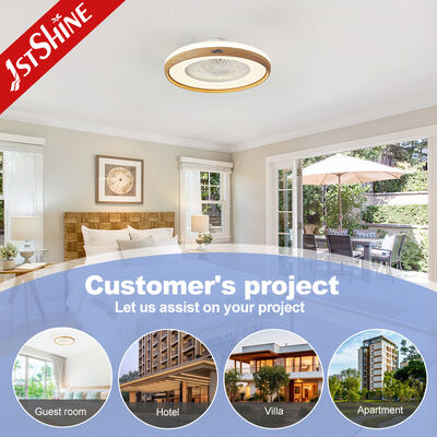This ceiling fan is designed specifically for low ceilings and small rooms, offering the perfect solution for spaces where a traditional fan may be too bulky. The wood grain finish on the edges adds a touch of warmth, while the minimalistic design blends seamlessly with various interior styles.